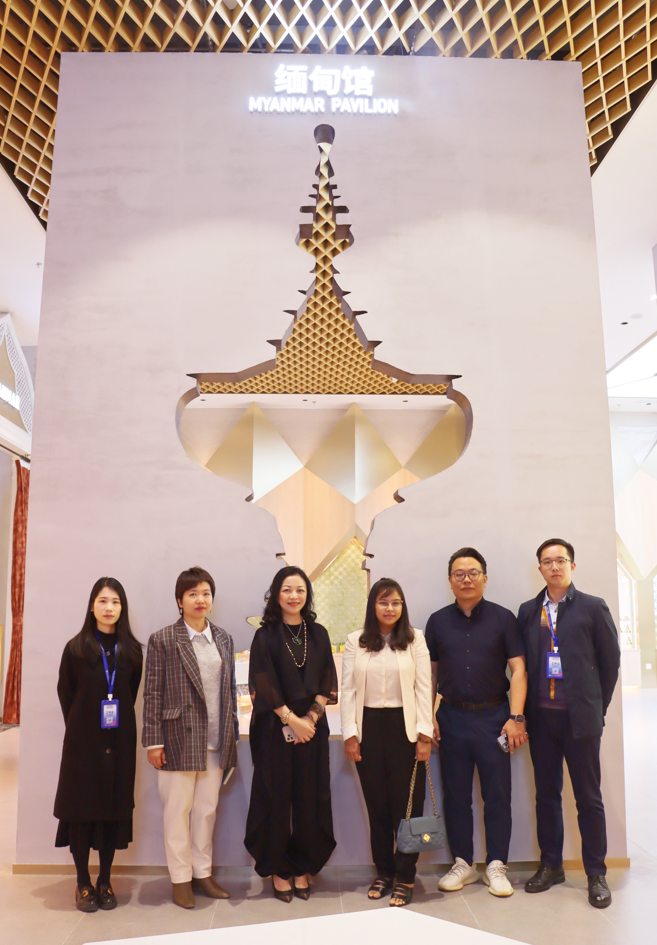 在參觀匯聚中心17個國家及地方特色展館過程中,趙海燕董事長介紹了匯聚中心展館如何通過人文設(shè)計理念烘托出各國當(dāng)?shù)靥厣a(chǎn)品,以沉浸式的獨特商品貿(mào)易體驗促進(jìn)交易。作為匯聚中心精心打造的國家主題展館,緬甸館以該國傳統(tǒng)特色文化為基調(diào),巧妙融合本地風(fēng)土人情元素打造的“金色緬甸”效果,贏得了高凱玨參贊的認(rèn)可。她表示緬甸館不僅設(shè)計別出心裁,而且能夠在一定的空間里盡可能地將緬甸多元文化與特色產(chǎn)品展示出來,可見項目策劃人所費的心思不一般。