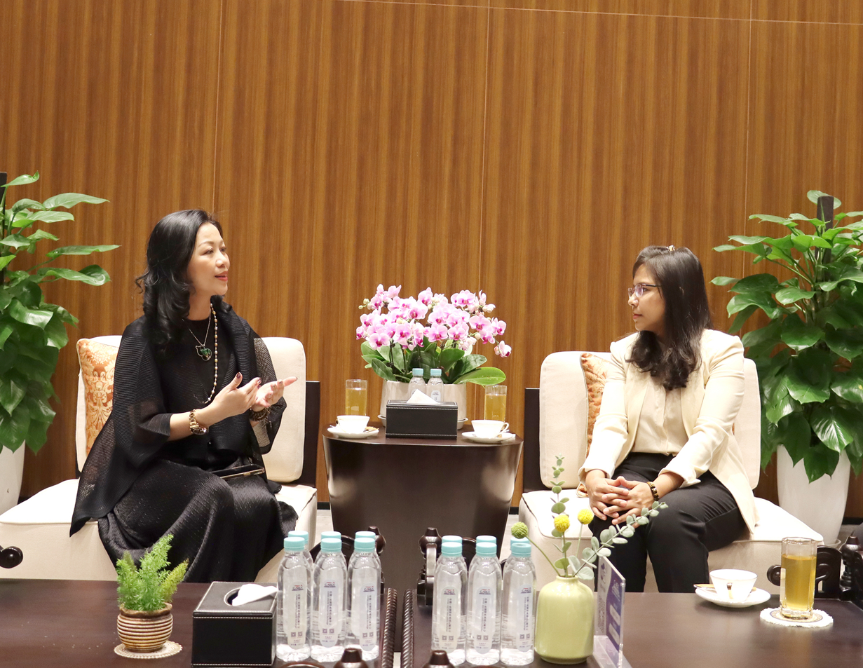 趙海燕董事長與高凱玨參贊在匯聚中心進(jìn)行交流探討