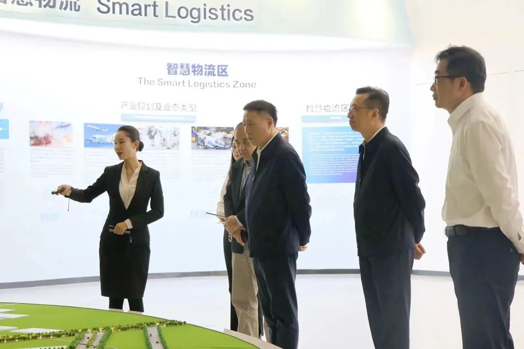 調(diào)研組一行在中新物流園展示中心聽取項目介紹
