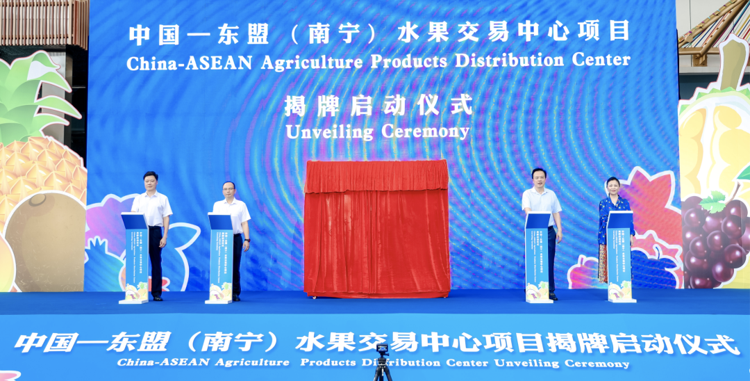 東盟好水果,新鮮零距離。2023年8月27日上午,中國—東盟(南寧)水果交易中心項(xiàng)目揭牌啟動儀式在中國—東盟特色商品匯聚中心隆重舉行。廣西壯族自治區(qū)商務(wù)廳黨組成員、副廳長粟堅(jiān),廣西壯族自治區(qū)南寧市委常委、南寧市人民政府副市長、黨組副書記陳竑,廣西壯族自治區(qū)南寧高新技術(shù)產(chǎn)業(yè)開發(fā)區(qū)管理委員會黨工委書記李耕,廣西新中產(chǎn)業(yè)投資有限公司、中國—東盟特色商品匯聚中心董事長趙海燕等出席,廣西壯族自治區(qū)南寧市人民政府副秘書長劉桂發(fā)主持活動。