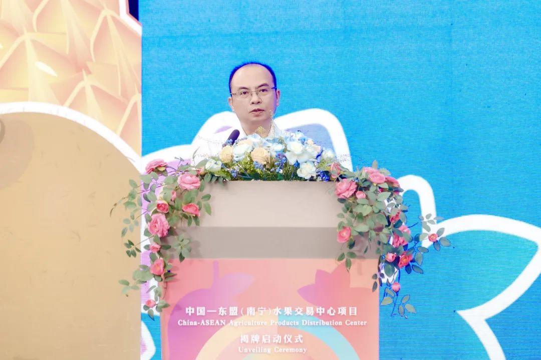 粟堅(jiān)副廳長在致辭中表示,廣西壯族自治區(qū)政府高度重視中國—東盟水果交易中心建設(shè),并將其列為中國—東盟產(chǎn)業(yè)合作區(qū)的前期成果性項(xiàng)目。通過推動在崇左、南寧、欽州三地建設(shè)中國—東盟水果交易中心,圍繞“買全國、賣東盟,買東盟,賣全國”的目標(biāo),致力于打造面向全國和東盟各國的水果分撥中心、交易中心、加工中心,實(shí)現(xiàn)中國—東盟水果交易、展示、結(jié)算、倉儲、加工、物流、通關(guān)的高度集聚。他強(qiáng)調(diào),要把中國—東盟水果交易中心建設(shè)成為國內(nèi)國際雙循環(huán)的重要節(jié)點(diǎn)樞紐,更好的服務(wù)“一帶一路”和中國—東盟自貿(mào)區(qū)建設(shè)。