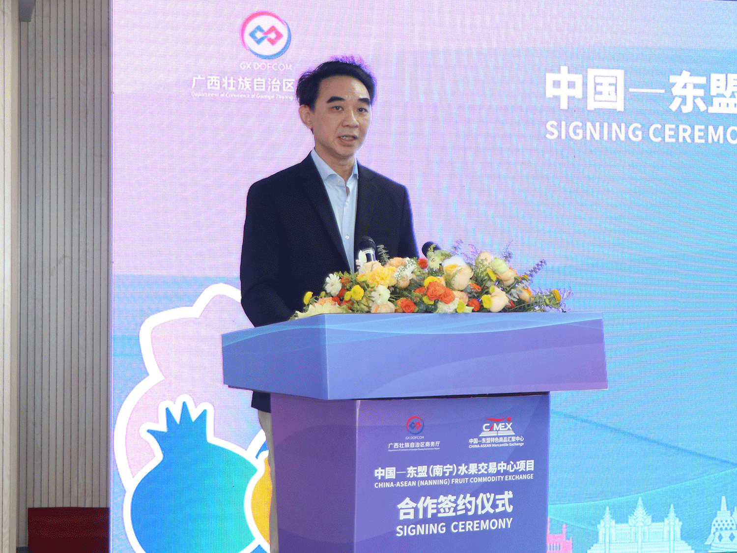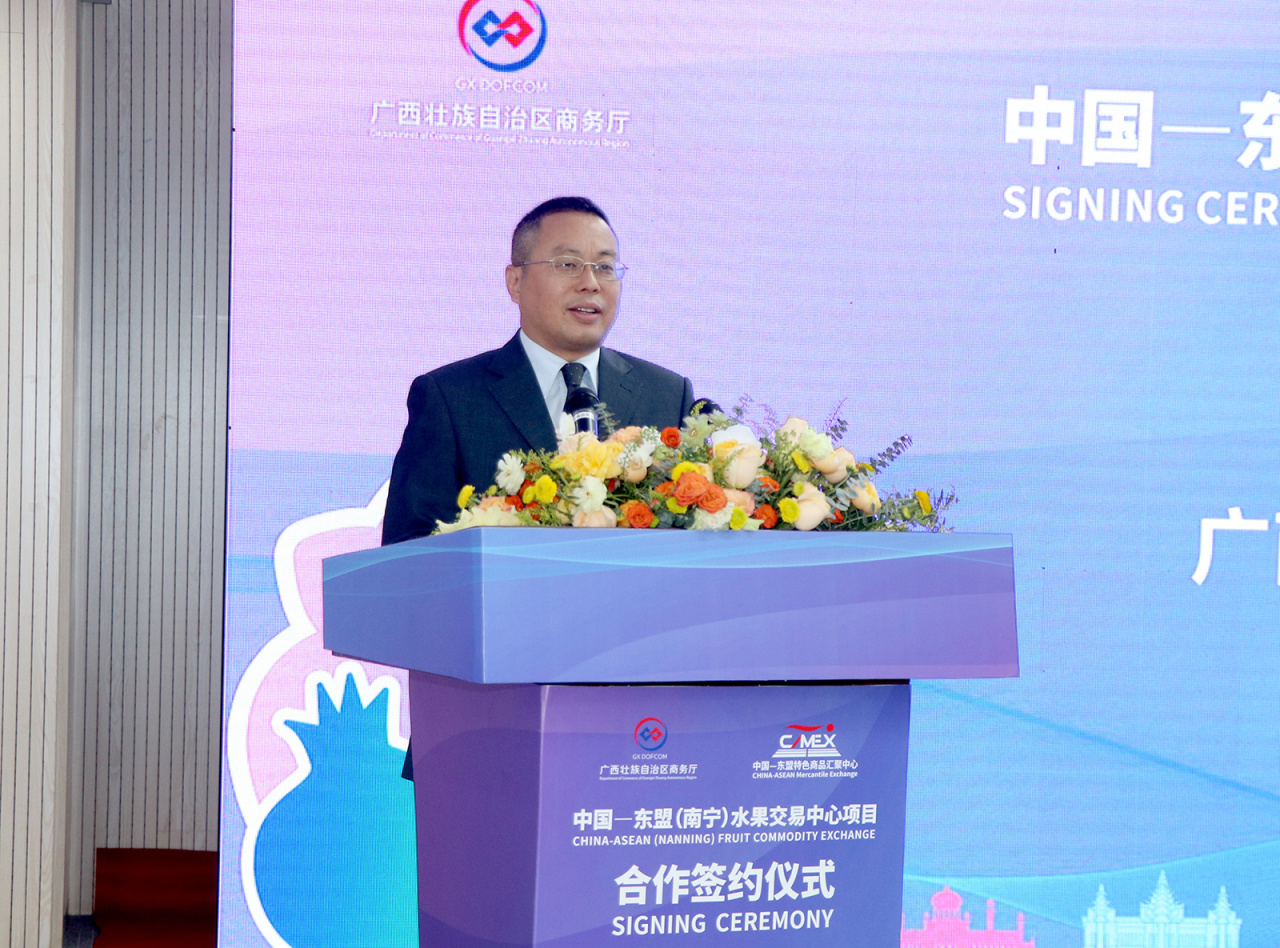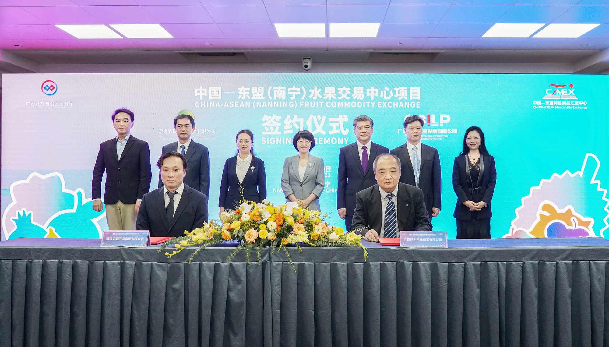 2023年11月9日,中國—東盟(南寧)水果交易中心項目合作簽約儀式在廣西壯族自治區(qū)商務廳舉行,標志著項目合作取得實質(zhì)性進展、項目建設步入新的發(fā)展階段。