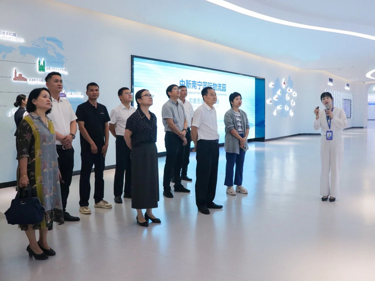 在中新物流園展示中心,調(diào)研組深入了解項(xiàng)目的整體建設(shè)和運(yùn)營情況。目前,園區(qū)已引進(jìn)超30家世界500強(qiáng)和中國100強(qiáng)龍頭企業(yè)進(jìn)行合作后,調(diào)研組認(rèn)為:中新物流園短時(shí)間內(nèi)便發(fā)展成如此規(guī)模,實(shí)屬難得,充分體現(xiàn)了園區(qū)在高水平共建國際陸海貿(mào)易新通道及“一帶一路”建設(shè)中起到的作用。