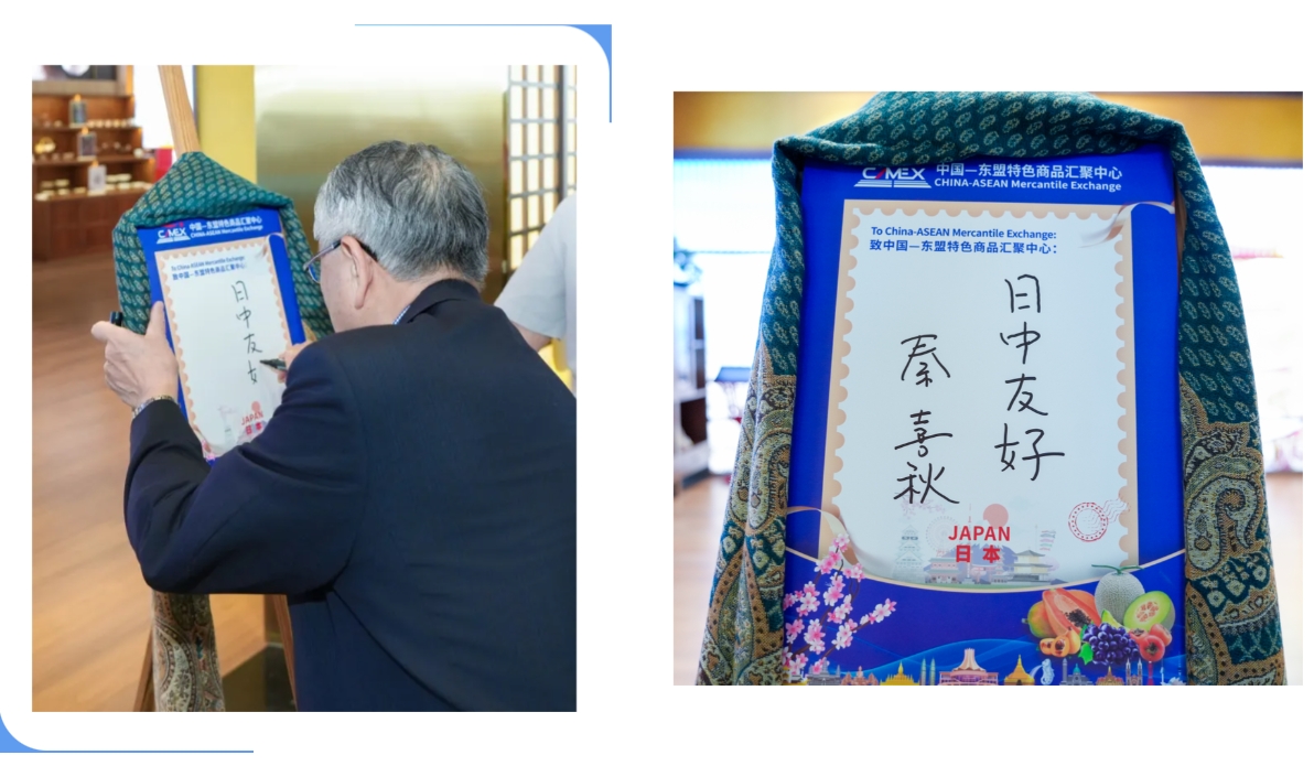 隨即,秦喜秋副會長在日本館書寫下“日中友好”的寄語,并祝愿匯聚中心發(fā)展越來越好!他表示,本次參觀考察收獲滿滿,但行程較為匆忙,仍覺意猶未盡,期待未來有更多機(jī)會到匯聚中心作進(jìn)一步溝通交流。
