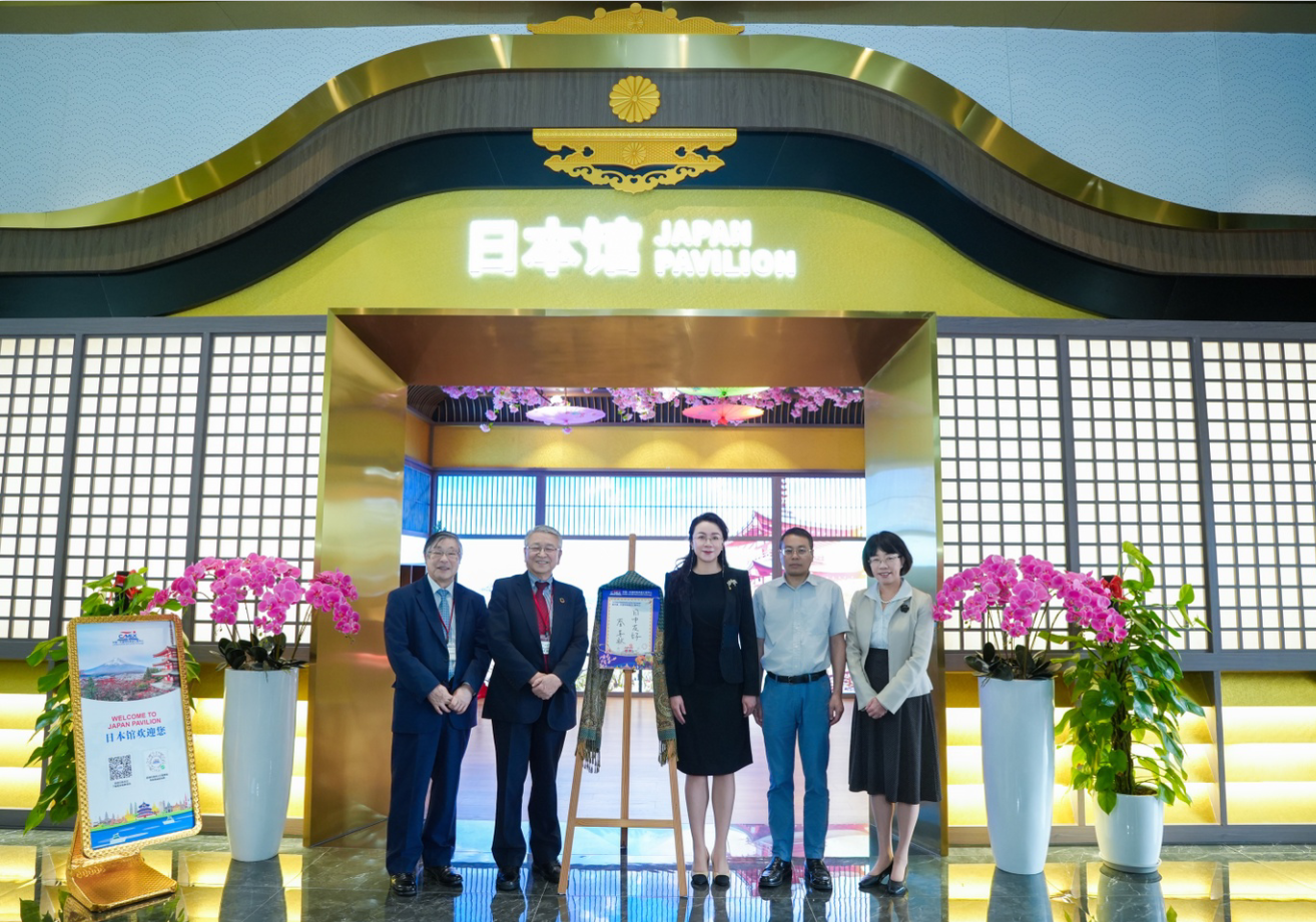 來到日本館,濃郁的日式風(fēng)情撲面而來,代表團(tuán)紛紛駐足拍照留念。作為匯聚中心獨具特色的四季主題館,日本館以“季節(jié)流轉(zhuǎn)”為設(shè)計主線,巧妙融合了日本傳統(tǒng)建筑美學(xué)與現(xiàn)代展示技術(shù),加之結(jié)合浮世繪的意境、茶道的禪意、花道的雅致,打造出移步換景的沉浸式體驗空間,讓訪客在有限的空間內(nèi)領(lǐng)略到日本文化的精髓。
