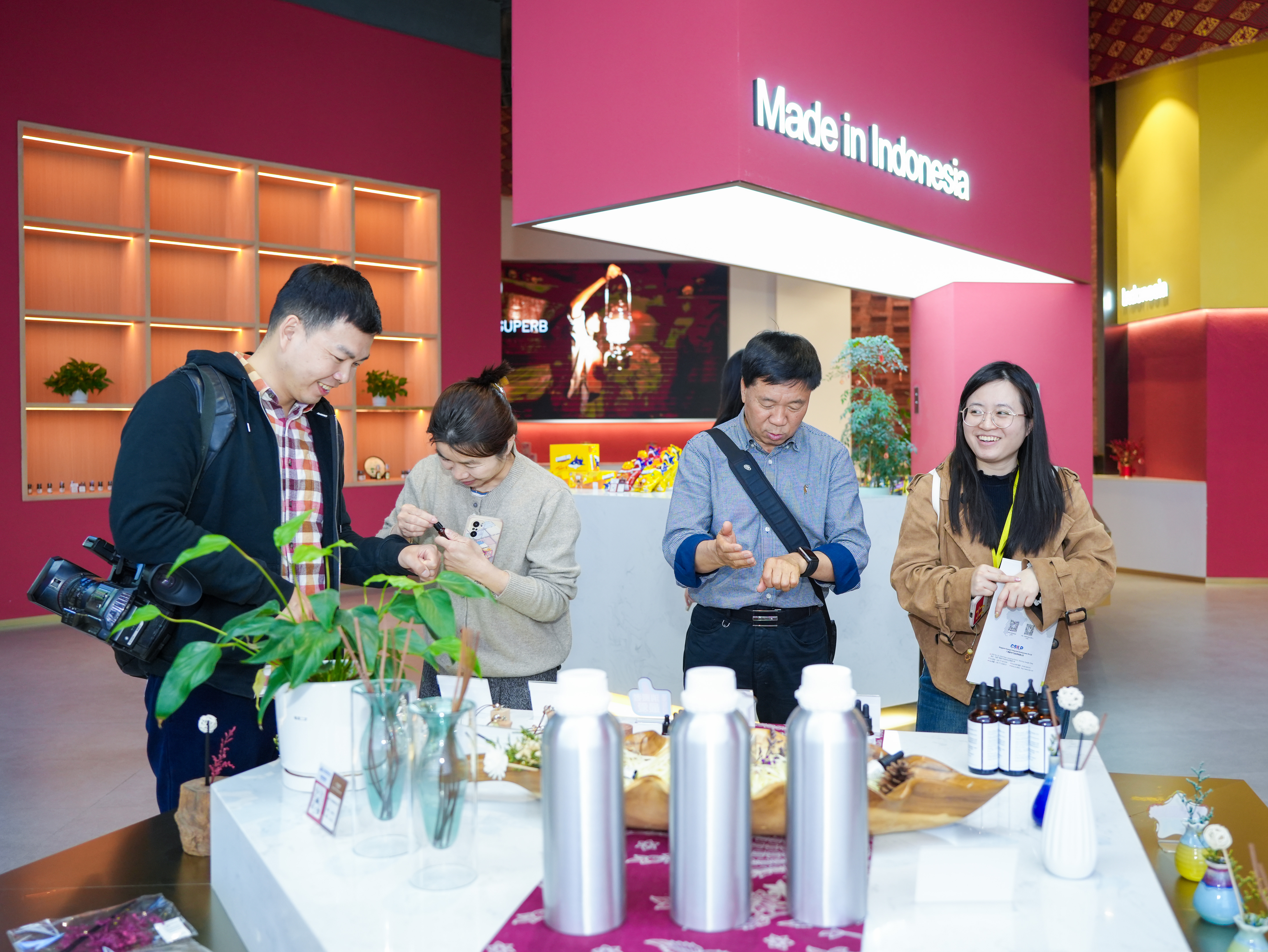 漫步匯聚中心,濃郁的東盟風(fēng)情迎面而來。印度尼西亞館的“巴厘島”風(fēng)情、新加坡館的“花園城市”設(shè)計......精心打造的17個主題展館,其匠心獨(dú)運(yùn)的文化元素和特色商品讓采訪團(tuán)眼前一亮。記者們或駐足欣賞,或交流討論,或舉起相機(jī)記錄精彩瞬間,沉浸式感受著東盟各國的獨(dú)特魅力。