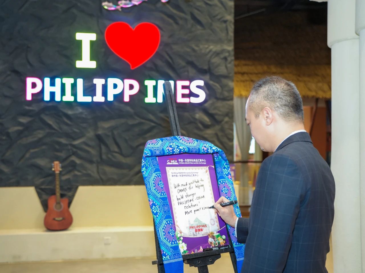 福安來商務(wù)領(lǐng)事在菲律賓館寫下了對匯聚中心的寄語,盛贊匯聚中心搭建的獨特商貿(mào)平臺,在助力構(gòu)建更緊密的菲中關(guān)系上做出的貢獻(xiàn),并祝項目發(fā)展得越來越好。他表示將持續(xù)關(guān)注項目發(fā)展,期待一年至少三次實地考察,深化雙方務(wù)實合作,共創(chuàng)美好未來。
