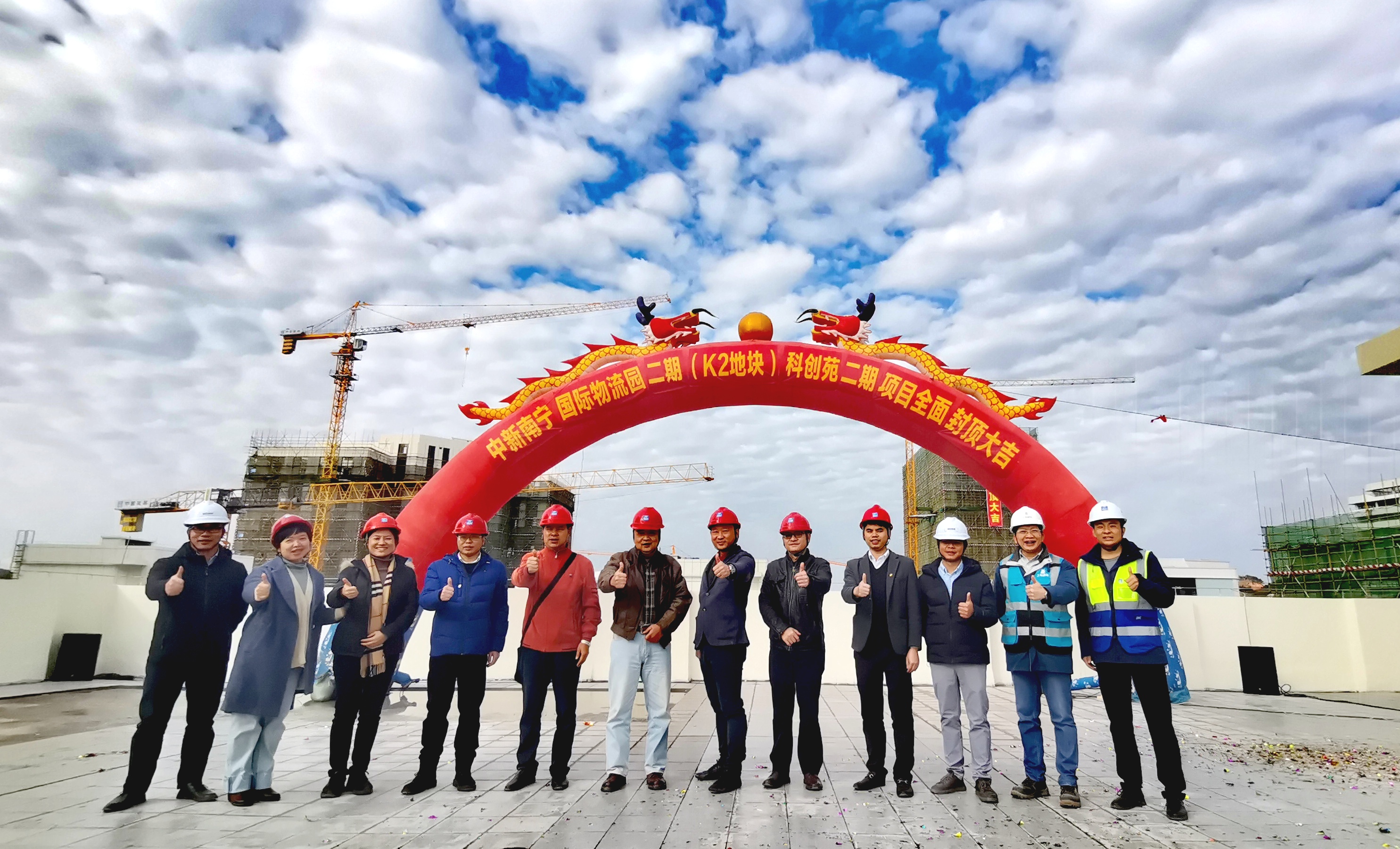 2022年1月11日,中新南寧國際物流園(以下簡稱“中新園”)二期(K2地塊)科創(chuàng)苑二期項目全面封頂,標志著中國—東盟特色商品匯聚中心的產業(yè)規(guī)劃施工工程進入新的階段。南寧綜保區(qū)管委會、廣西新中產業(yè)投資有限公司、項目工程施工總包方和各參建方共同參加了此次封頂儀式。