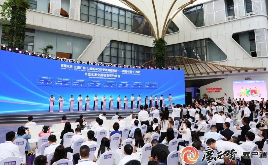 此次活動(dòng)圍繞“東盟水果及RCEP優(yōu)品·溯源之旅、匯聚廣西、通達(dá)中華、全民共享”4個(gè)篇章進(jìn)行,越南駐華大使范清平、文萊駐華大使拉赫瑪尼、柬埔寨駐南寧總領(lǐng)事唐肅安、印度尼西亞駐廣州總領(lǐng)事斌德加、老撾駐南寧總領(lǐng)事翁巴努·西巴色、馬來西亞駐南寧總領(lǐng)事法蒂爾·伊斯邁爾、緬甸駐南寧總領(lǐng)事凱素林、菲律賓駐廣州總領(lǐng)事艾瑞現(xiàn)場(chǎng)或通過視頻進(jìn)行推介;與輝同行(北京)科技有限公司負(fù)責(zé)人董宇輝進(jìn)行了分享并受聘為本次活動(dòng)直播電商合作伙伴,人民網(wǎng)董事長(zhǎng)、傳播內(nèi)容認(rèn)知全國(guó)重點(diǎn)實(shí)驗(yàn)室主任葉蓁蓁發(fā)布中國(guó)(廣西)—東盟水果大模型;南寧、欽州、崇左市,自治區(qū)商務(wù)廳、文化和旅游廳,中國(guó)食品土畜進(jìn)出口商會(huì)和國(guó)內(nèi)電商平臺(tái)、跨境電商企業(yè)代表分別進(jìn)行了推介;一批東盟水果采購(gòu)項(xiàng)目、RCEP優(yōu)品落地加工項(xiàng)目、東盟水果全國(guó)銷售項(xiàng)目進(jìn)行簽約,發(fā)布構(gòu)建中國(guó)—東盟人工智能合作生態(tài)圈倡議。